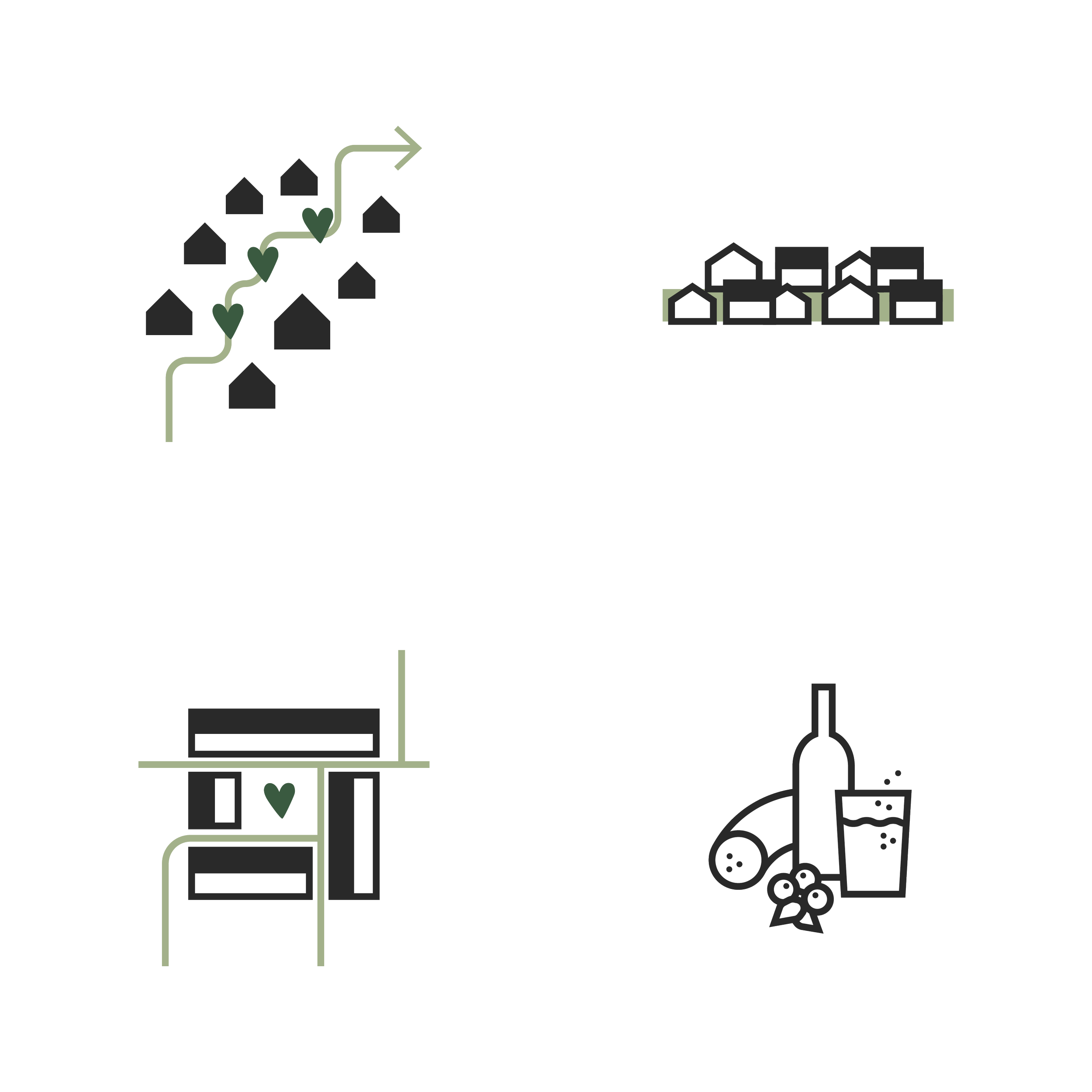Förslaget består av privata bostäder kring en central gårdsplan som gränsar till en gemensam jordbruksmark. Alla bostäder har visuell koppling till jordbruksmarken för att uppmuntra till delaktighet. Ett gemensamhetshus med tvättstuga, gästlägenheter och samlingsrum finns mellan bostäderna och jordbruksmarken, samt ett växthus för året-runt-odling. Vid tomtens södra gräns finns ett hus till det större kollektivet: invånarna i byn, med samlingsrum och ett litet stånd där det går att köpa överskottet från odlingen.