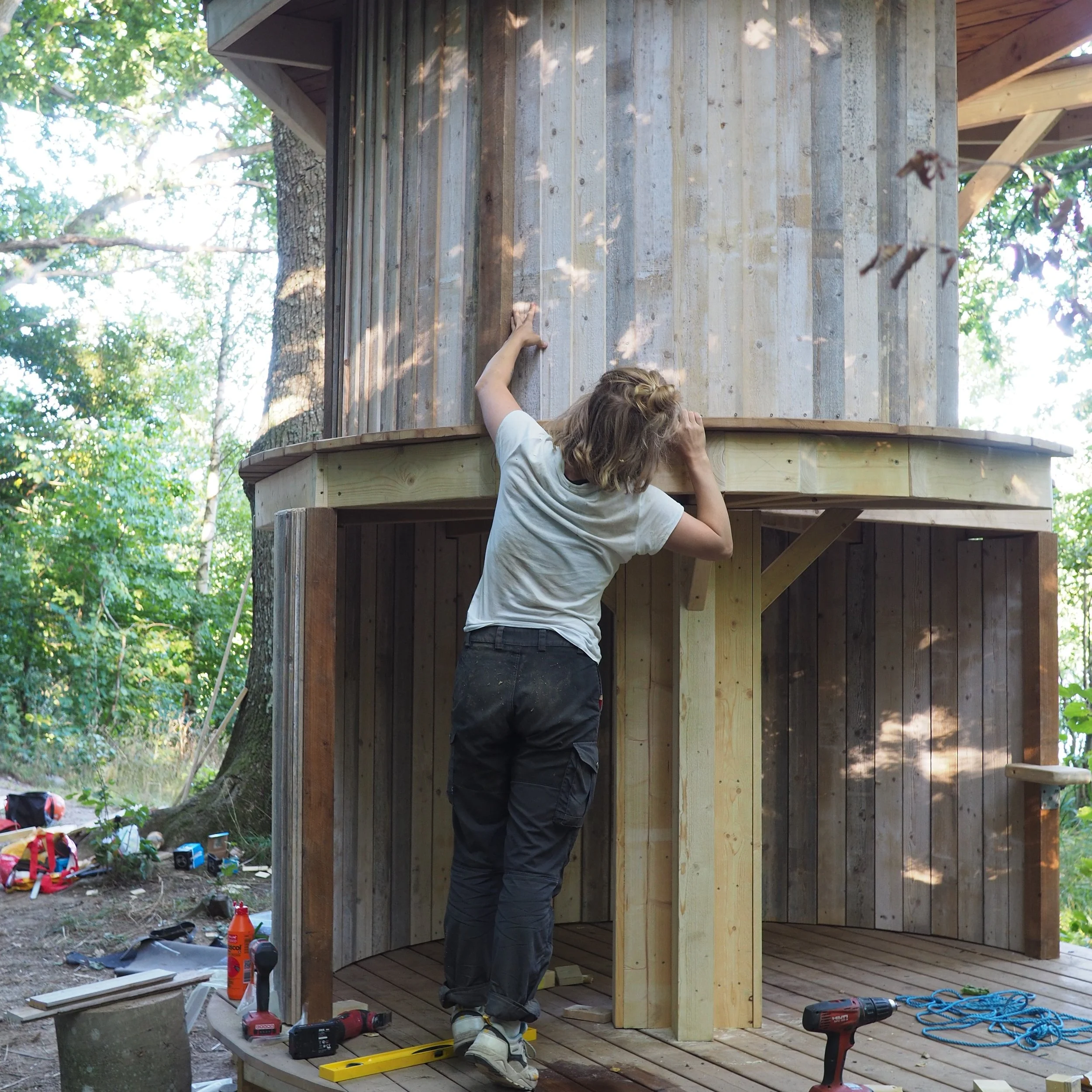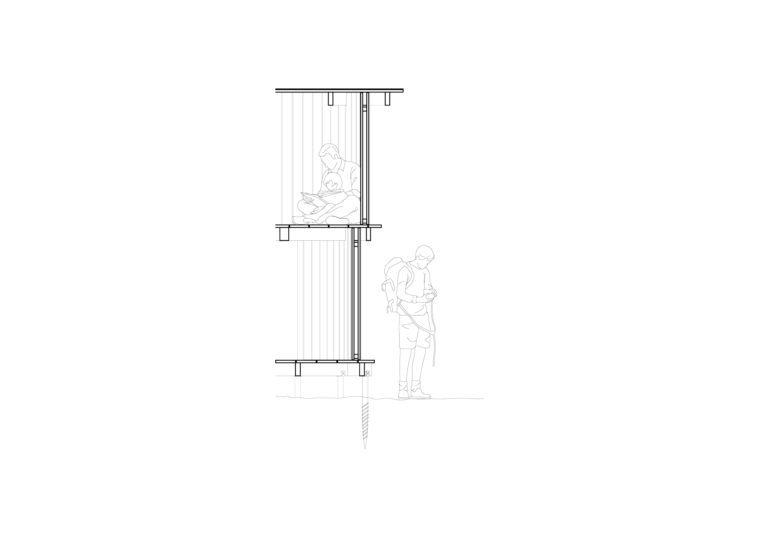 Vindskyddets form är inspirerat av näckrosorna i sjön och i synnerhet dess enkla men vackra blad. Två olika nivåer ger skydd och vyer åt olika håll. De horisontella planens synliga konstruktion påminner om näckrosbladets ådringar och vill föra besökaren till känslan av att vila på ett blad och samtidigt finna skydd under ett annat. Att ta sig upp till den högre plattformen är inte helt lätt, men väl där uppe väntar utsikten över sjön och näckrosorna i vattenbrynet.